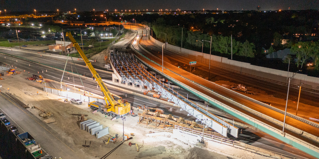 Now place that bridge over 13 active lanes of I-294 and reconstruct it while the corridor below is being widened at the same time.