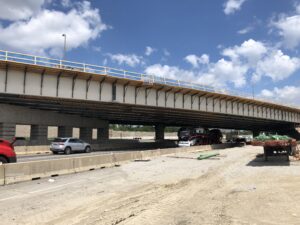The new bridge was constructed adjacent to the existing structure. Once complete, traffic was shifted to the new flyover before demolition of the original bridge began. All of this occurred while adjacent mainline contracts were under construction, requiring daily coordination.