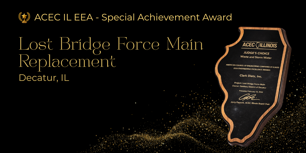 This week, Clark Dietz was honored at the ACEC Illinois Engineering Excellence Awards (EEA) as the Lost Bridge Force Main Replacement project received a Special Achievement Award. This recognition celebrates [...]