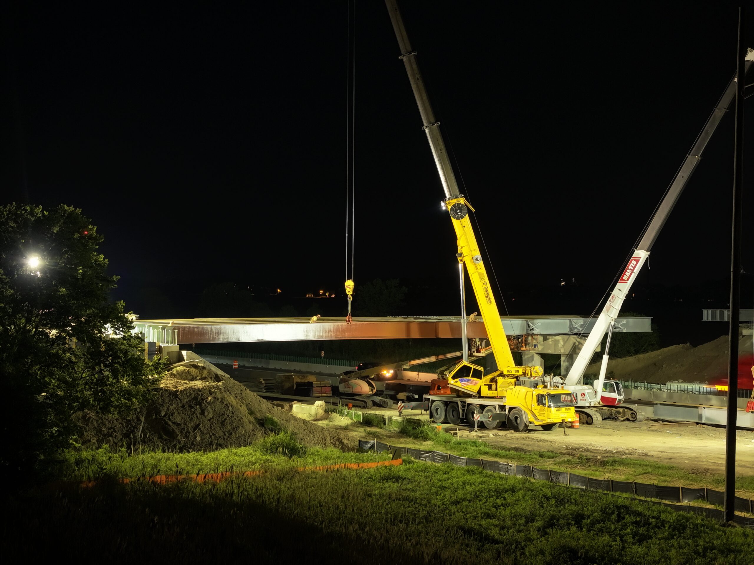 - River Road: Approximately 50% complete, the River Road bridge project is progressing well and is expected to be finished by the end of this year. Managing both projects concurrently has proven to be efficient and effective. Check out our photographs the overnight beam-erection completed in May: